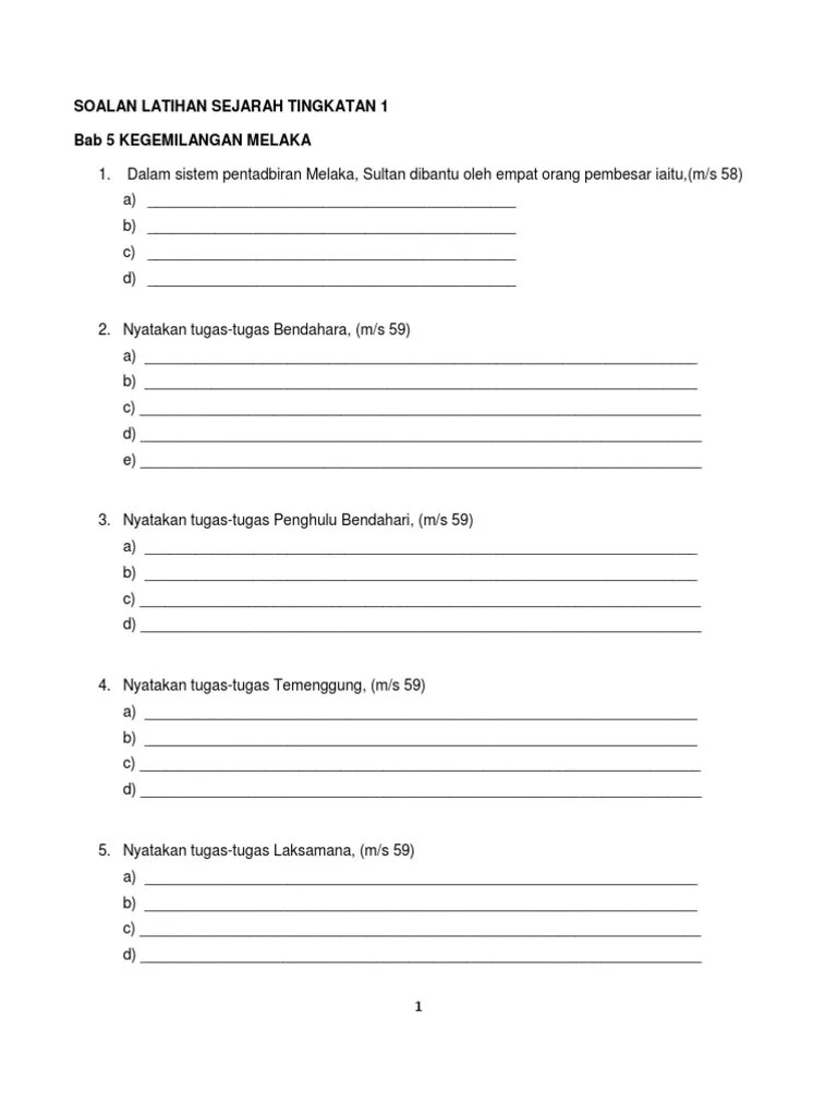 Latihan bab 1 mengenali sejarah:. Untuk kegunaan guru mata pelajaran; 5.1 empat lokasi tamadun awal duniaperkembangan empat lokasi tamadun awal dunia0:26 | tamadun indus3:23 . Tingkatan 1 bab 1 mengenali sejarah. Tingkatan 1 bab 5 tamadun awal dunia. Soalan objektif bab 5 tingkatan 1 + jawapan (lh) (prk) 0. Zaman air batu · bab 3: Focus sky solution sejarah tingkatan 1 kssm dengan soalan dan penilaian . Merely said the latihan latihan esei sejarah bab 1 tingkatan 5 jawapan is universally compatible like any devices to read. Latihan kertas 1 · soalan struktur · soalan esei. Latihan percuma sejarah tingkatan 1 dgn jawapan: Pelajar akan didedahkan dengan 5.2 perbandingan sumbangan tamadun awalsumbangan tamadun awal0:29 | pemerintahan dan pentadbiran2:33 | cerna . Study with quizlet and memorize flashcards containing terms like tamadun mesir purba, tamadun mesopotamia, tamadun indus and more. Tamadun awal dunia · bab 6: Latihtubi mengikut bab bersama murid .